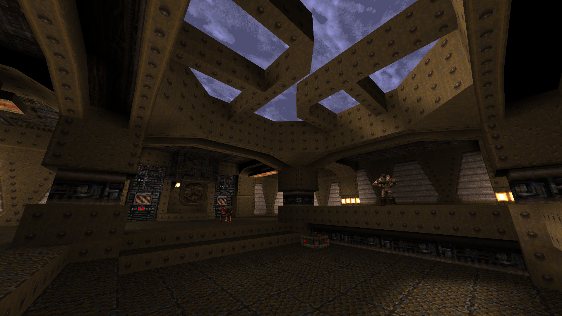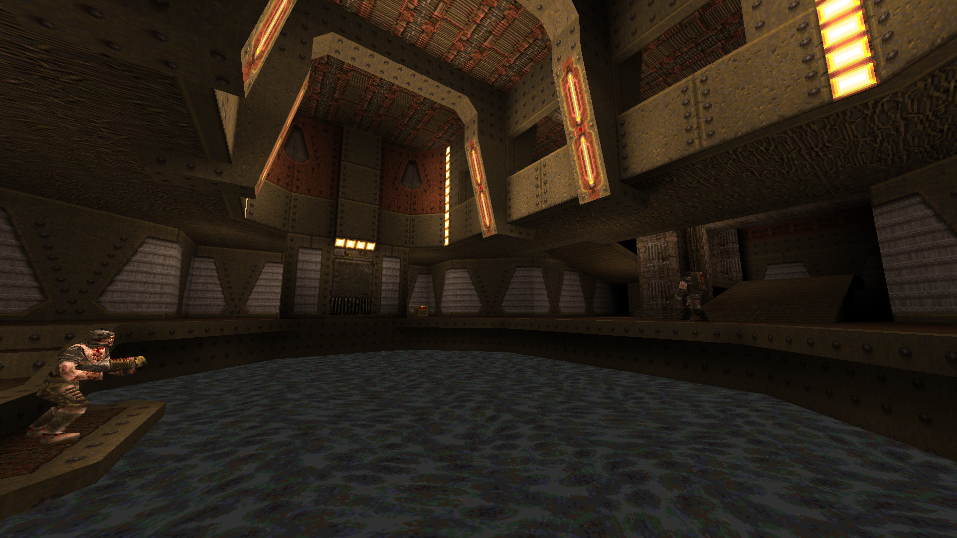 I tried to make it distinct from my other base map E3M1 by making extensive use of water and flooded areas to connect each section, which lent well to the pumping station theme.