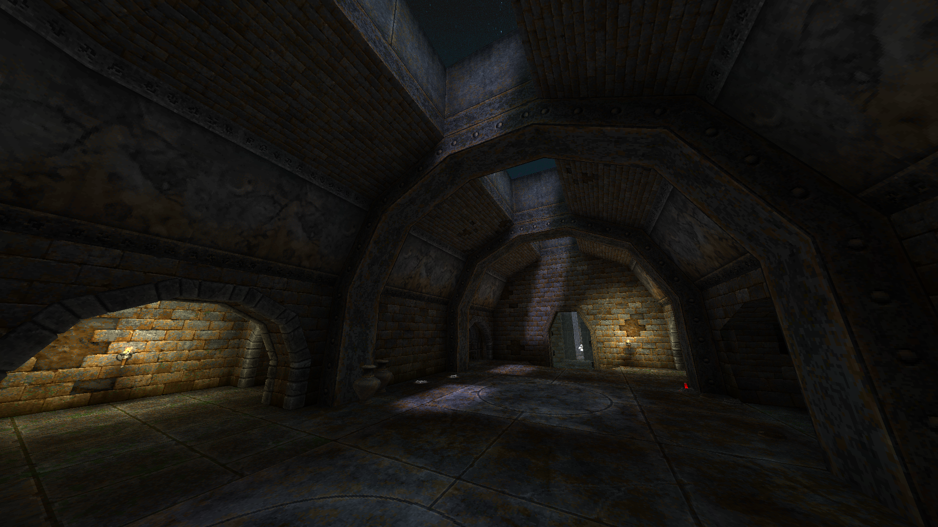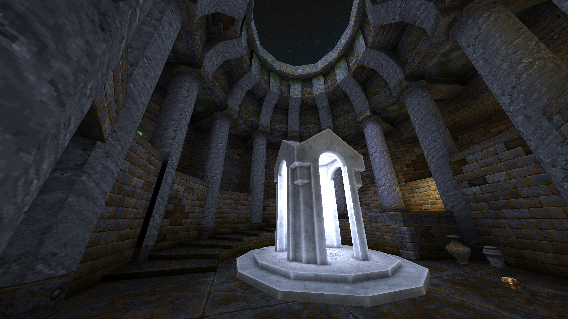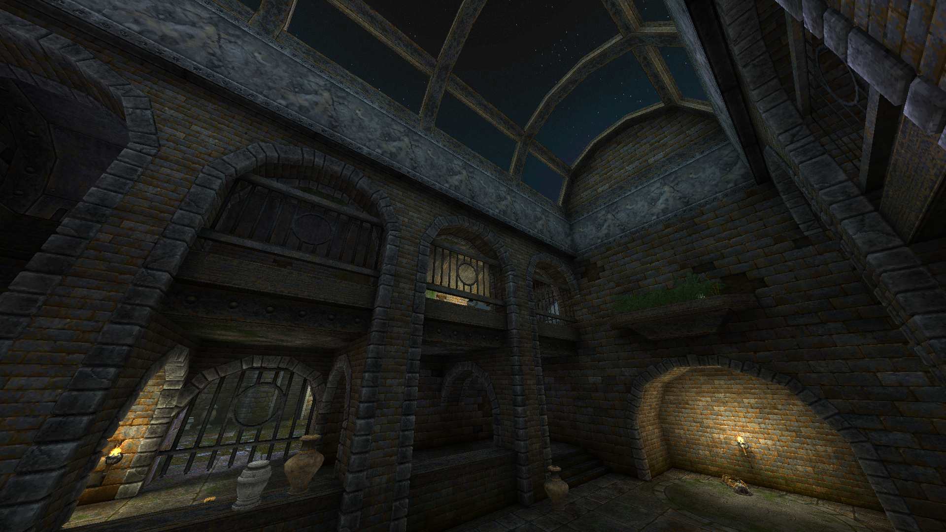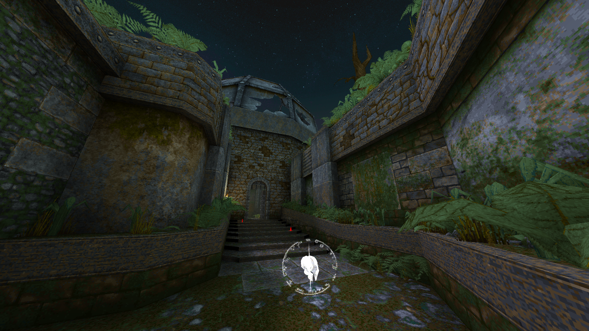 At the heart of the level stands a giant dead tree covered by a large broken dome. As this was the central focus of the map I made this a hub area that led off into individual sections but always brought the player back to the hub to unlock the next key door, to help the flow and avoid them getting lost.